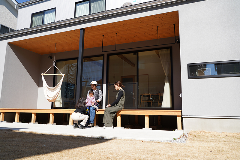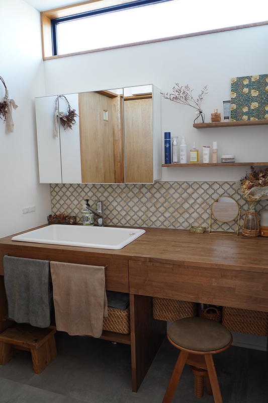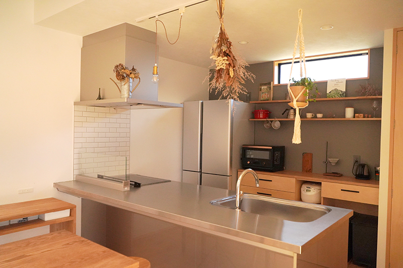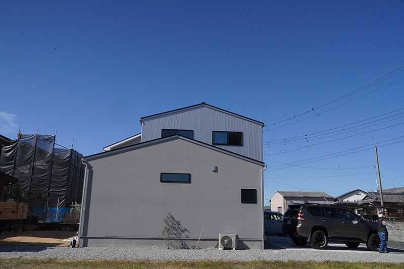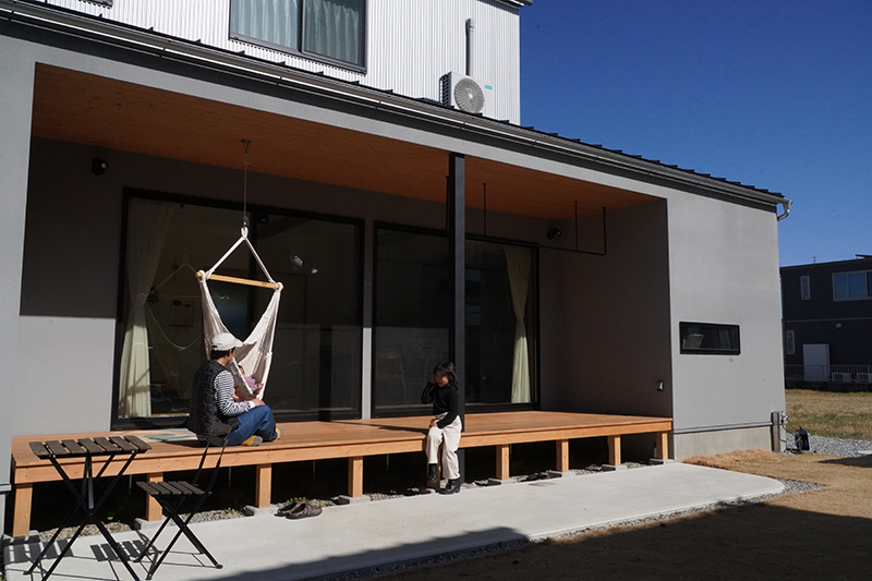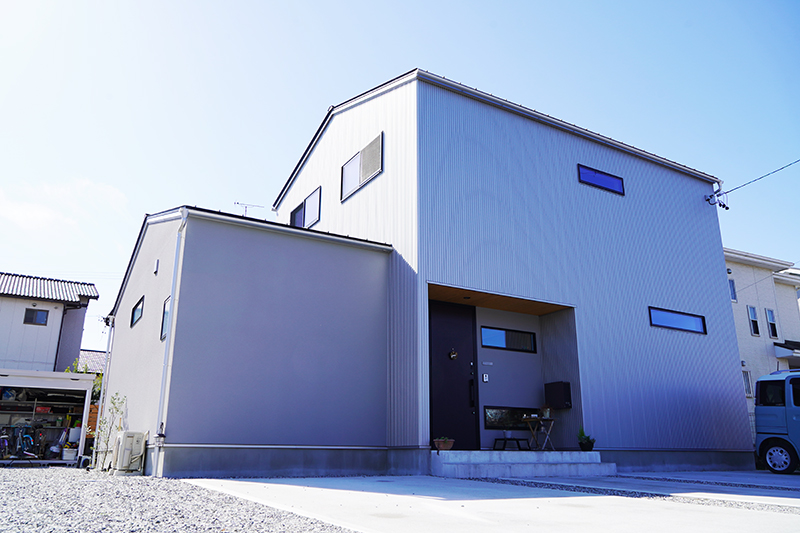 #ガルバリウム外壁 #塗り壁 #無垢の家 #無垢床 #モルタル #土間 #土間収納 #アウトドア #キャンプ道具 #ウッドデッキ #グレーの家 #造作家具 #造作洗面 #造作カップボード #新築
